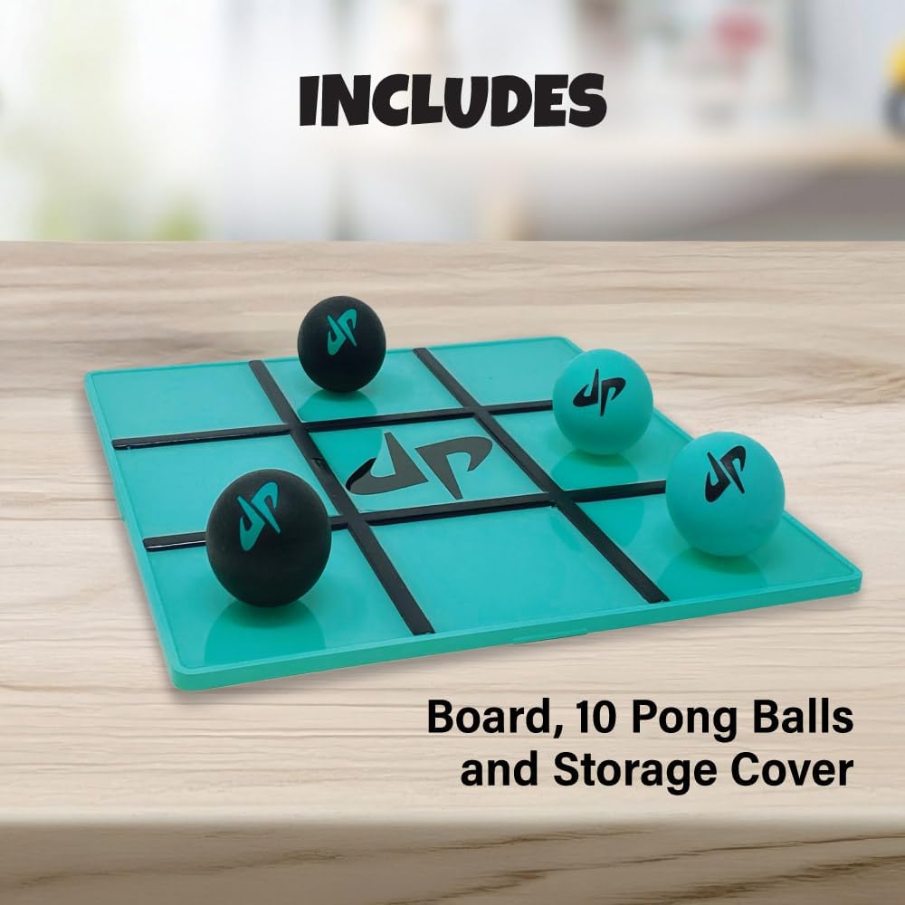 The Dude Perfect Sticky Tic Tac Toe is a tabletop activity designed for two players. The game uses soft, sticky game pieces that attach to a vertical or angled surface, allowing players to place and remove pieces easily during play. Its simple setup makes it suitable for casual use at home, during family game nights, or at small gatherings.