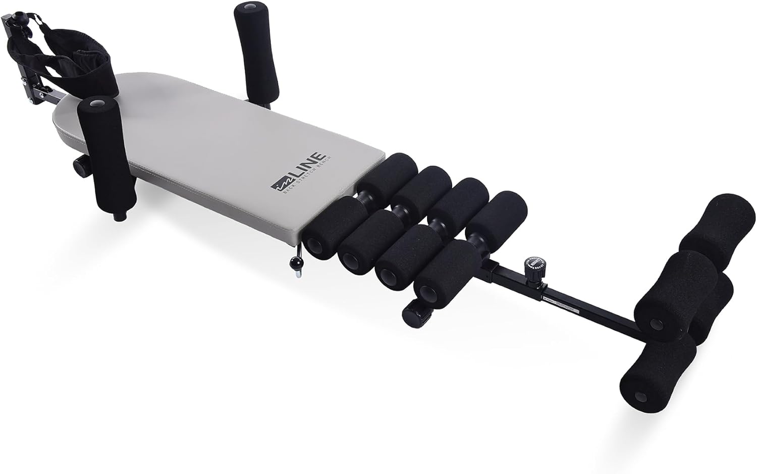 The Stamina Inline Back Stretch Bench is designed to help decompress the spine and stretch the back and neck using controlled traction. It offers an alternative to full inversion tables by allowing users to stretch while lying flat, with adjustable settings to control the level of decompression.