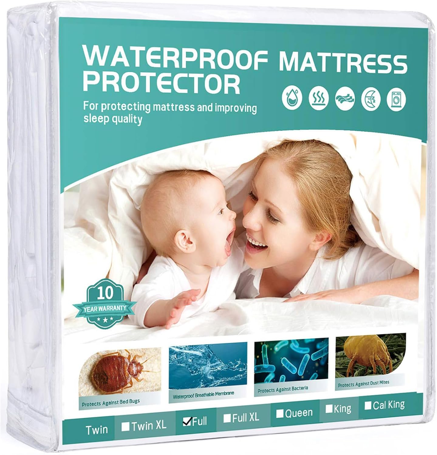 An elasticized fitted-sheet design ensures the protector stays firmly in place without shifting during sleep. Easy to install and maintain, this mattress cover is suitable for homes, guest rooms, apartments, and dorms.