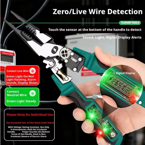 Upgrade your toolbox with this Multifunction Heavy-Duty Wire Stripper & Cutter Pliers Set, designed for electricians, technicians, and DIY users who need precision and durability. Built from high-strength alloy steel, this versatile tool combines wire stripping, cutting, gripping, and voltage testing into one compact and efficient design.
